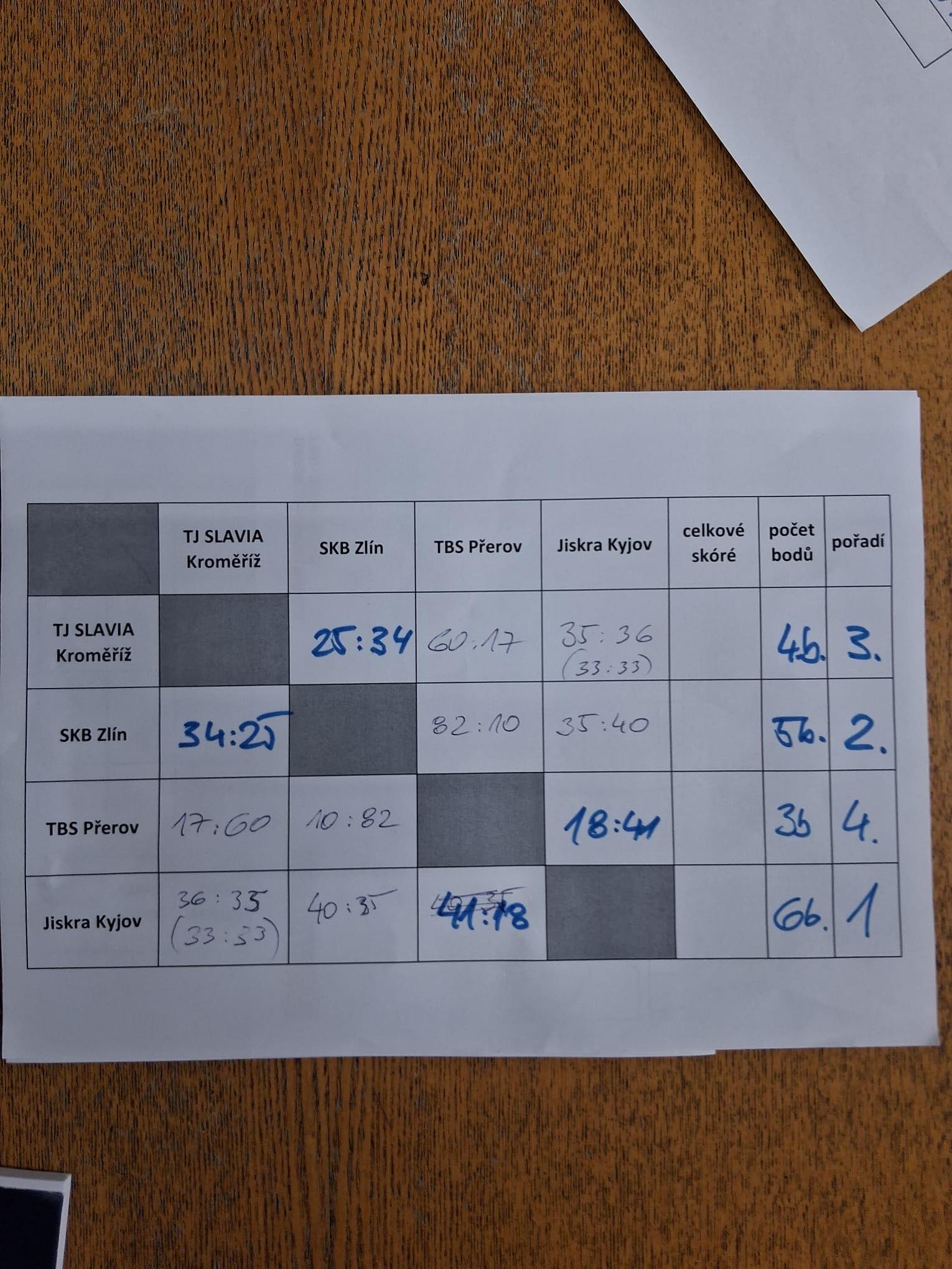 Se Zlínem hrajeme tradičně vyrovnané bitvy. Ještě dvě minuty před koncem jsme ztráceli pouhé 4 body. Snaha o zvrat v užší rotaci hráčů nám tentokrát nevyšla a skóre odskočilo na konečných -10, ale nasazení kluků bylo příkladné. Tým Přerova, i když nastupuje v kategorii U11, byl pro nás výborným sparingpartnerem.
